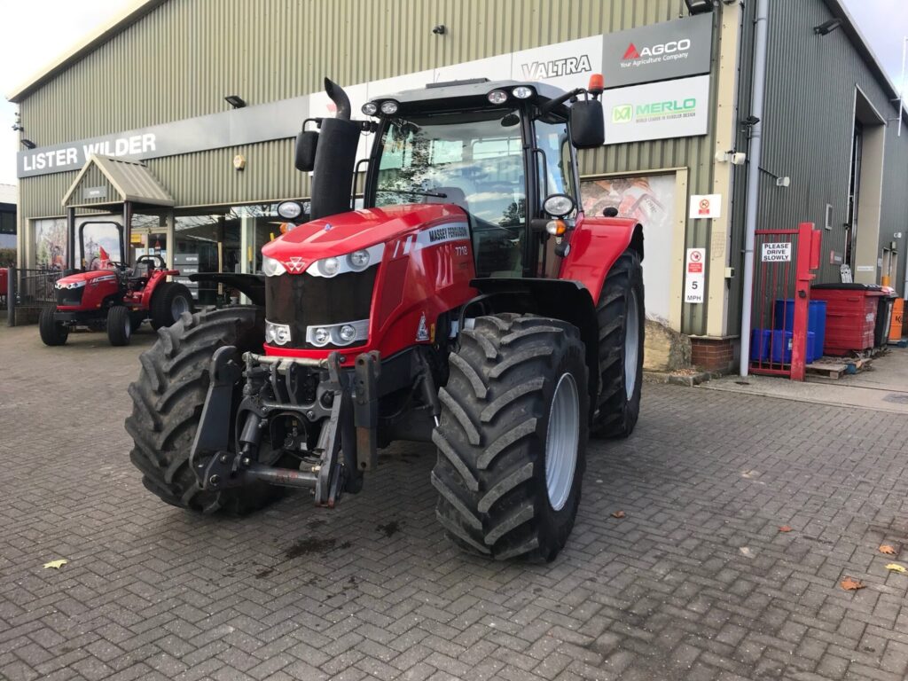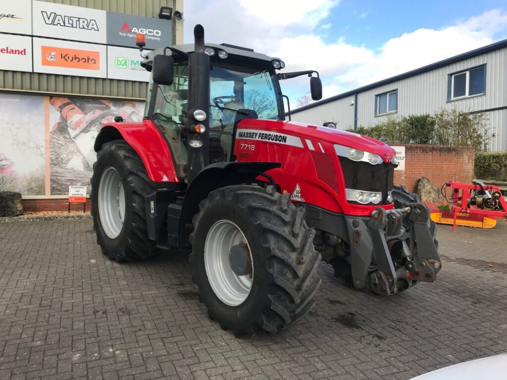 2015 Massey Ferguson 7718EXDV 4WD Exclusive Tractor, 50Kph Dyna vt transmission, 190HP, Closed centre Spools Front tyres: 540/65R28 (60%), Rear tyres: 650/65R38 (70%) Manual rear top link, Creep speed, Front suspension Cab suspension, Air conditioning, Front linkage