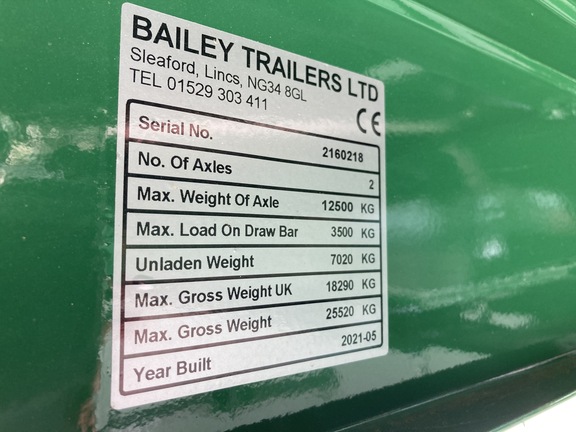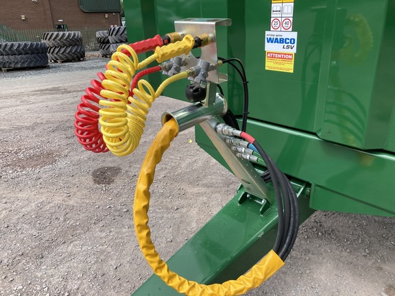 560/60 R22.5 Michelin tyres, Axles: Granning 420 x 180 2025 Track, Suspension: Parabolic springs 3 leaf – 100mm 32 Ton, 18 Tonne sprung draw bar, Bailey Green, Air brakes, arched full front window, beacon, body prop, grain chute 18 x 12, Hydraulic rear door, lights extra on rear door, mudguards and flaps – plastic, rollover sheet(arched headboard) nearside, silage square back 9000 deep, tapered body, brake chamber type 30.